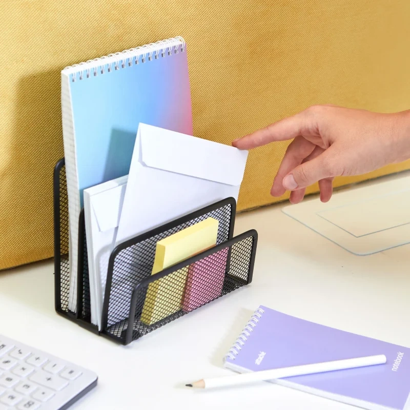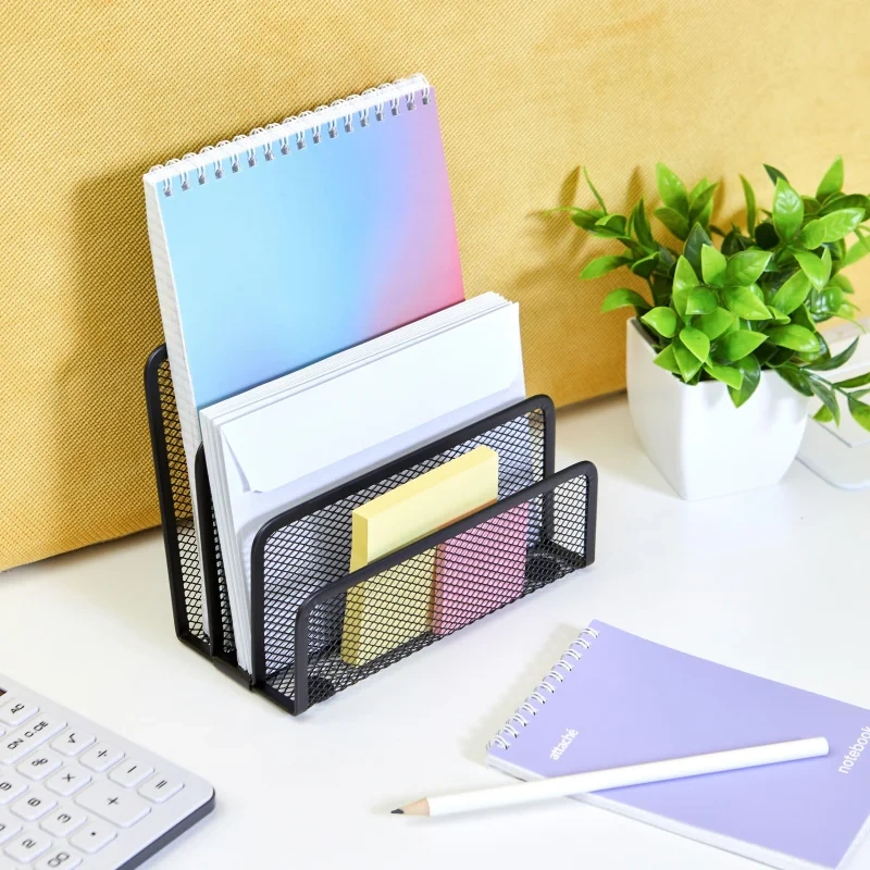 Подставка для бумаг и писем Attache изготовлена из высококачественной и легкой металлической сетки черного цвета. Идеально подходит для использования в офисах, или дома на рабочем столе. Выполнена в форме прямоугольника.