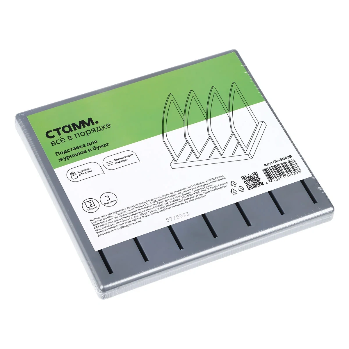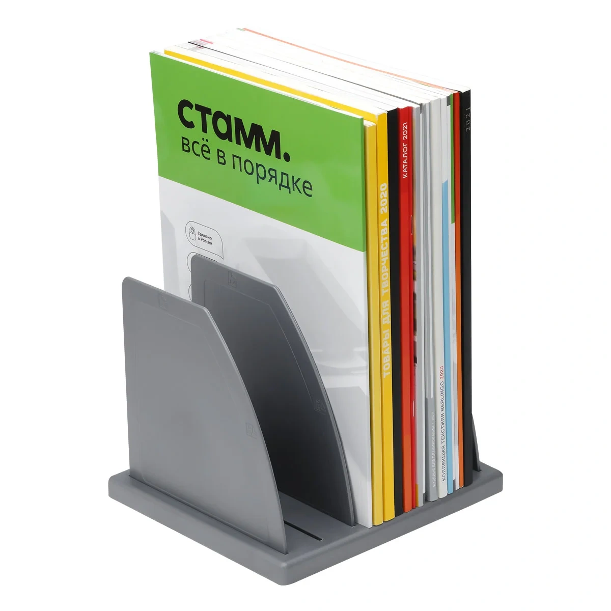 Подставка для журналов и бумаг «СТАММ» с тремя отделениями подходит для хранения бумажной продукции форматов А4 и А5. Современный дизайн, быстрая и легкая сборка. Вмещает до 1500 листов. Изготовлена из качественного ударопрочного полистирола. Цвет лотка – серый. Возможна установка перегородок в вертикальном и горизонтальном положениях. Удобная конструкция предусматривает регулировку ширины отделений. Упакована в термоусадочную пленку, поставляется в разобранном виде. Инструкция по сборке в комплекте.