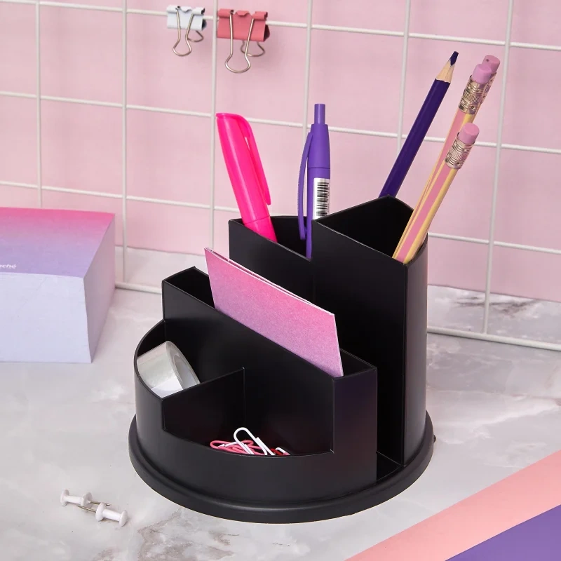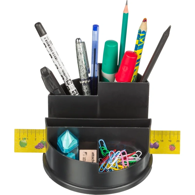Подставка для канцелярских мелочей Attache хорошо подойдет для рабочего стола и не займет много места. Все необходимые канцелярские принадлежности всегда будут под рукой.Эргономичный пластиковый органайзер с 6 отделениями для пишущих принадлежностей и канцелярских мелочей. Удобно расположенные секции разной высоты. Прочный корпус, гладкая глянцевая поверхность. Цвет: черный. Размер: 105×140×140 мм.