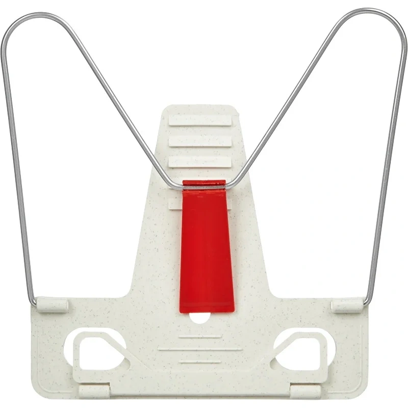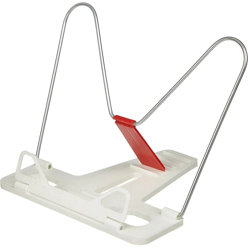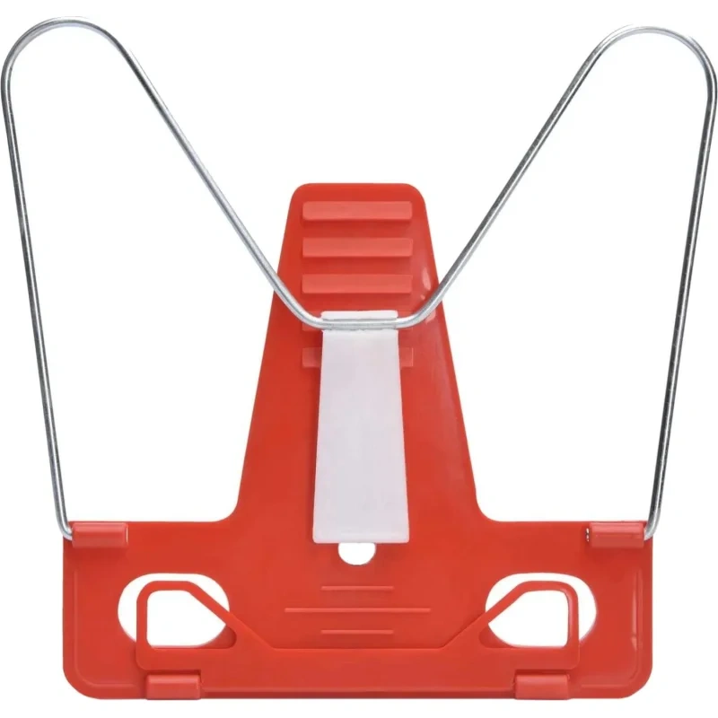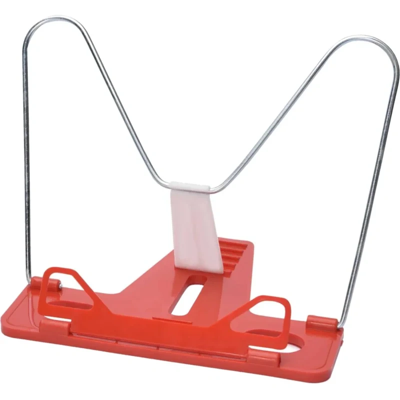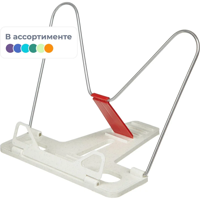 Подставка для книг выполнена из стальной проволоки и сертифицированного полипропилена и представлена в ассортименте цветов. Служит для удержания книг в вертикальном положении. Предусмотрена возможность регулировки наклона. Поставляется в прозрачной упаковке с европодвесом. Размер подставки — 215×193 мм, вес — 72 г.