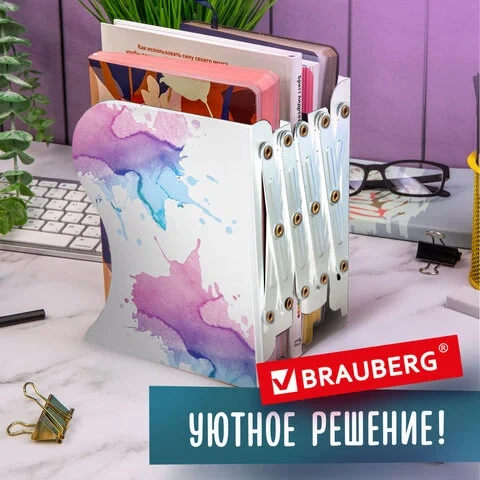 Подставка для книг Brauberg белая, металлическая, раздвижная