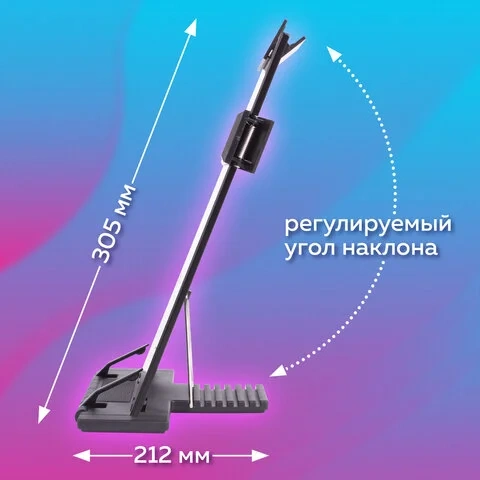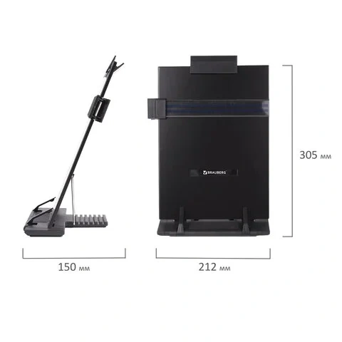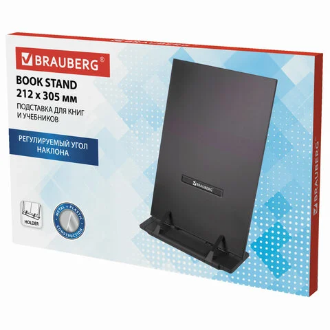 Подставка для книг, учебников BRAUBERG, большая, регулируемый наклон, металл/пластик, черная, 237447