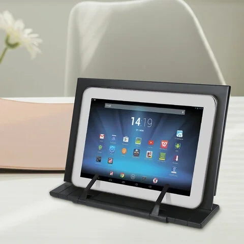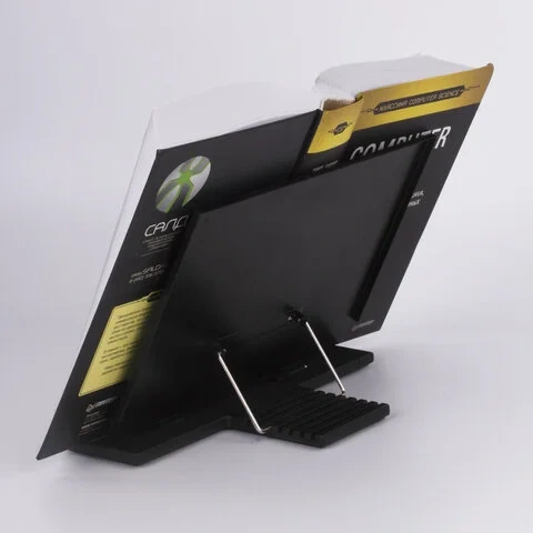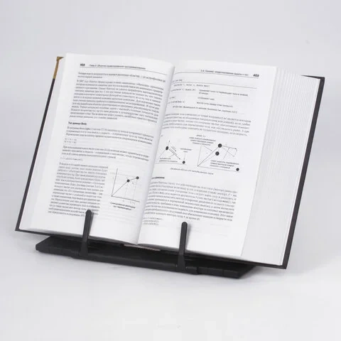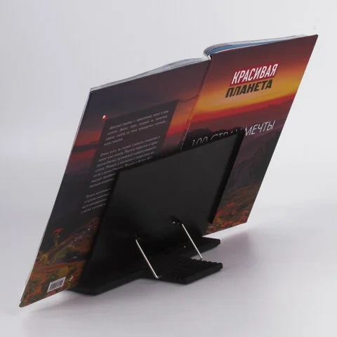 Регулируемый наклон позволяет максимально удобно располагать книгу или журнал на рабочем месте индивидуально для каждого читателя. Материал корпуса выполнен из металла, а основания и держатели страниц - из прочного пластика. Антискользящие вставки обеспечивают устойчивое расположение на любой поверхности.