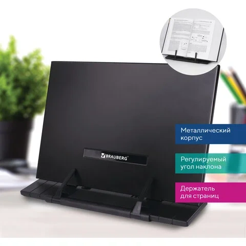 Подставка для книг, учебников BRAUBERG, регулируемый наклон, металл/пластик, черная, 237446