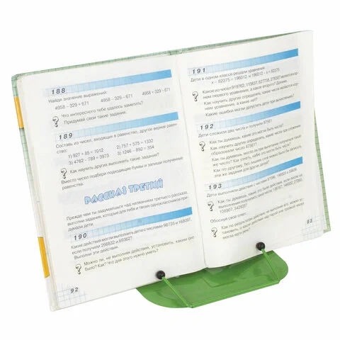 Удобный упор удерживает учебник в вертикальном положении, облегчая чтение и подготовку домашней работы. Угол наклона регулируется. Нижние страницы надежно фиксируются прочным держателем. Имеется отделение для ручки или карандаша. Корпус выполнен из металла. Размер подставки - 17,2х23,7 см.