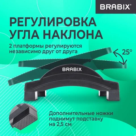 Подставка для ног BRABIX 'Ultra 4' 43х32 см, регулировка угла наклона, 2 платформы, 533039