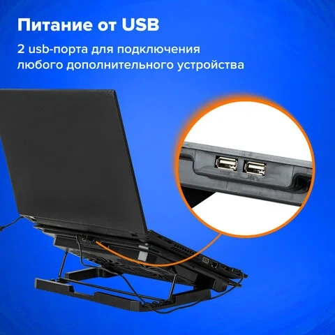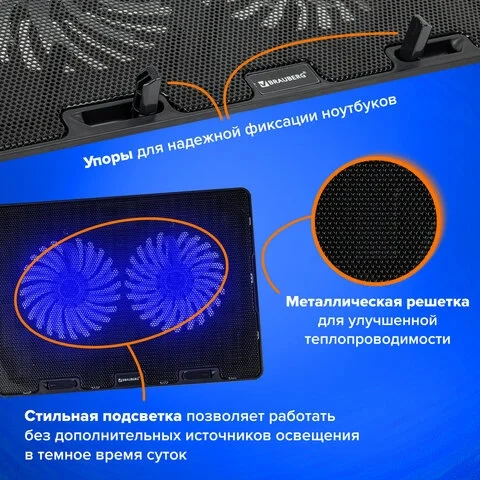 Подставка для ноутбука Brauberg 352х252мм, 2 порта USB-A, LED-подсветка, с охлаждением