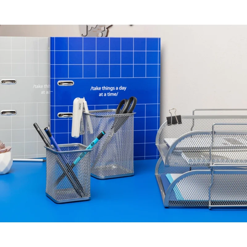 Подставка для письменных принадлежностей Attache используется для хранения карандашей, ручек, маркеров и других принадлежностей для письма. Выполнена из легкой металлической сетки серебристого цвета. Эргономичная подставка в форме квадратного стакана будет стильно выглядеть на Вашем рабочем столе , особенно, если будет дополнена другими элементами коллекции из металла — лотками для бумаг, вертикальными накопителями.