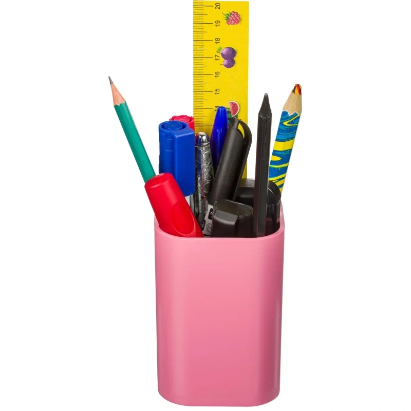Подставка для канцелярских мелочей Attache хорошо подойдет для рабочего стола и не займет много места. Все необходимые канцелярские принадлежности всегда будут под рукой. Размер подставки 100×70×70 мм. Подставка изготовлена пластика розового цвета. Не является вращающейся.