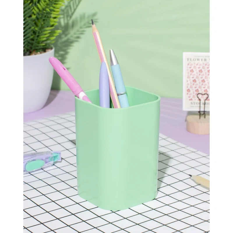 Подставка для канцелярских мелочей Attache хорошо подойдет для рабочего стола и не займет много места. Все необходимые канцелярские принадлежности всегда будут под рукой. Размер подставки 100×70×70 мм. Подставка изготовлена пластика зеленого цвета. Не является вращающейся.
