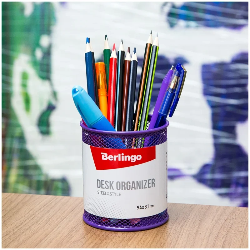Стакан для ручек Berlingo Steel&Style 94х81мм, фиолетовая