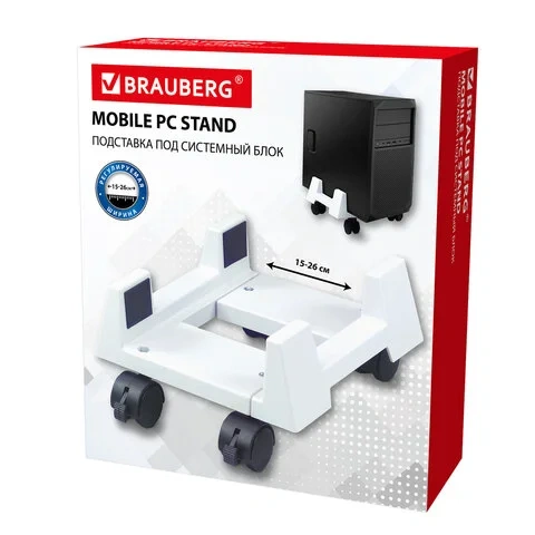 Подставка для системного блока Brauberg 152 мм-260 мм, серая, передвижная
