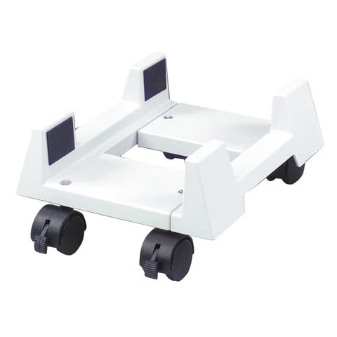 Изготовлена из прочного пластика светло-серого цвета. Снабжена 4 роликами, 2 из которых имеют встроенный стопор. Мобильность подставки позволяет передвигать системный блок компьютера без усилий, не повреждая напольное покрытие. Благодаря чему появляется возможность производить более тщательную уборку рабочего места. При расположении системного блока непосредственно на полу в него попадает гораздо больше пыли, а также возможно появление ржавчины от частого контакта с влажным полом после уборки – наличие специальной подставки исключает данную проблему и позволяет продлить срок службы дорогостоящего оборудования. Поставляется в фирменной картонной коробке.