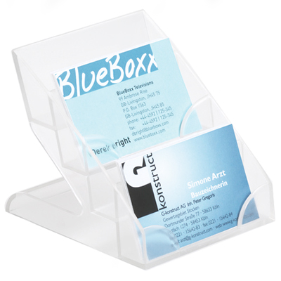 Прозрачный диспенсер для визиток, 4-ех ярусный, для 240 визитных карточек. Несколько диспенсеров могут фиксироваться друг с другом.