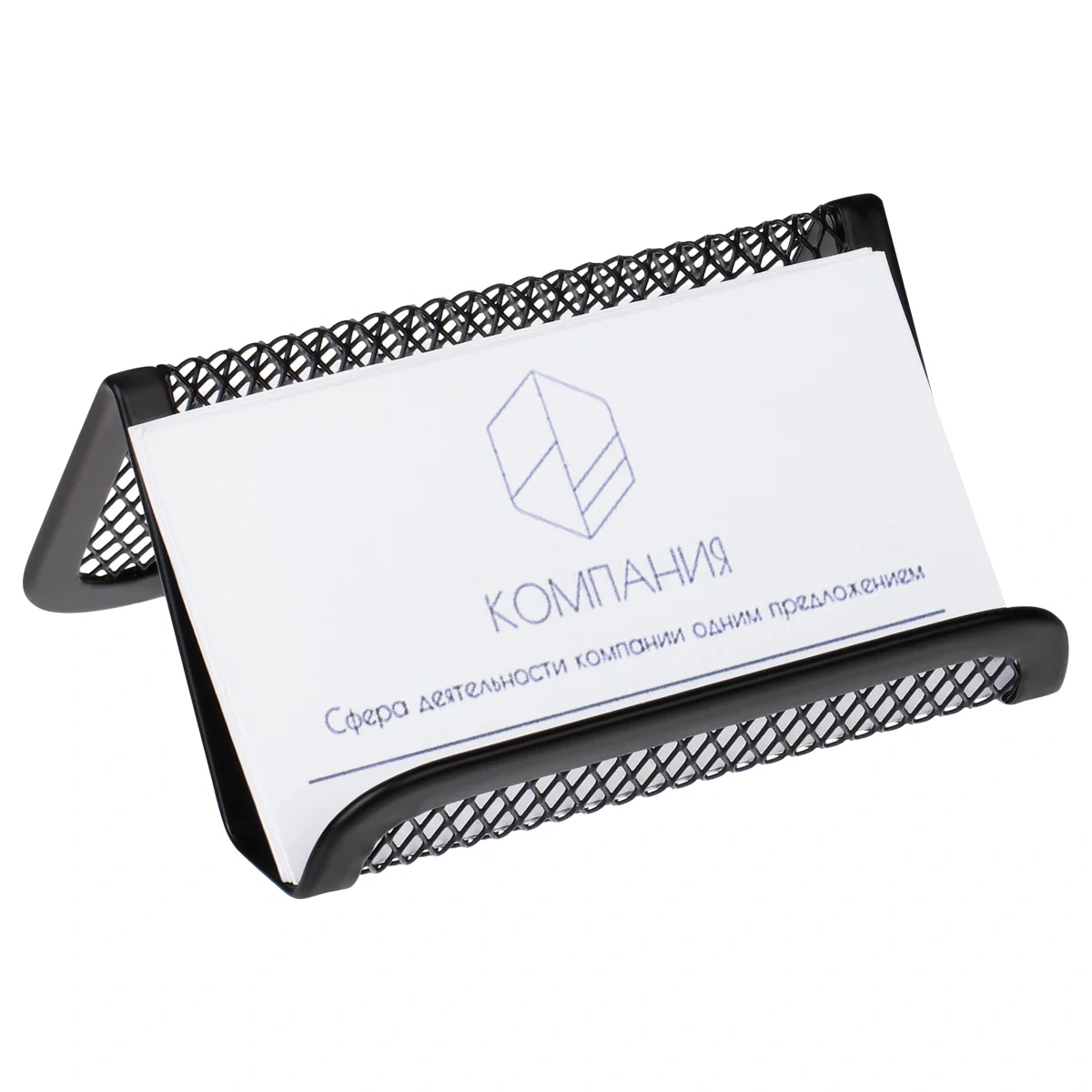 Подставка для визиток настольная СТАММ, 4*9,5*7см, металлическая, черная