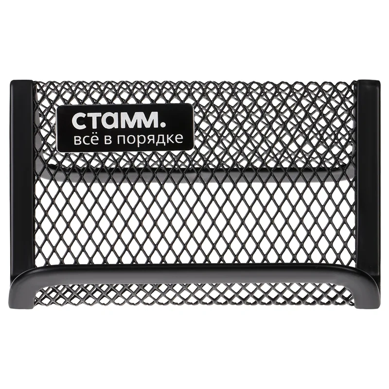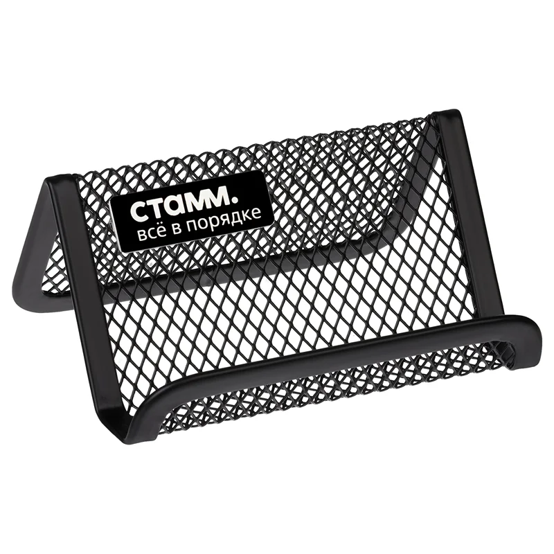 Металлическая настольная подставка для визиток СТАММ имеет 1 отделение и размер: 40*95*70 мм. Материал изделия - металл, цвет - черный. Предназначена для использования в офисе и служит для хранения визитных карточек. Сетчатое исполнение предотвращает образование пыли внутри.