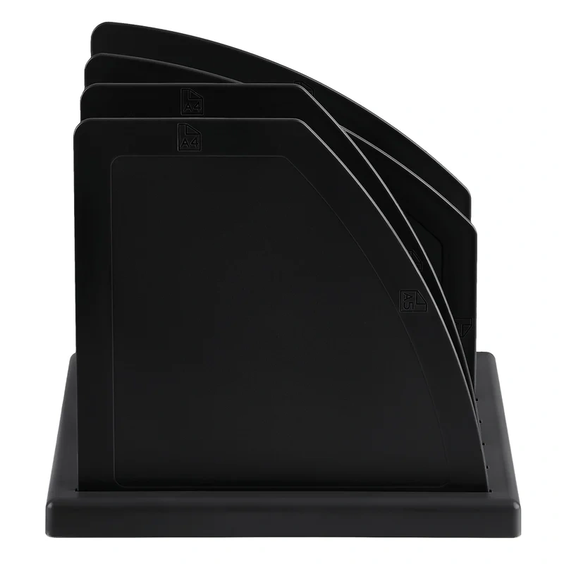 Лоток-сортер 3 отделения для бумаг форматов А4, А5. Современный дизайн, быстрая и легкая сборка. Возможна установка перегородок в вертикальном и горизонтальном положениях. Удобная конструкция предусматривает регулировку ширины отделений. Изготовлен из качественного пластика. Упакован в термоусадочную пленку, поставляется в разобранном виде. Инструкция по сборке в комплекте. Цвет лотка - черный. Изделие высотой 170мм, глубиной 193мм, шириной 215мм вмещает 1500 листов.