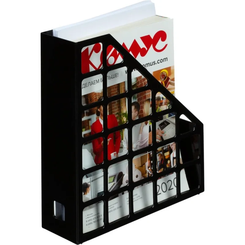 Подставка предназначена для размещения журналов и бумаг форматов А4, А5. Возможна установка перегородок в вертикальном и горизонтальном положениях. Простая сборно-разборная конструкция, имеет 3 регулируемых отделения. Удобно транспортировать и хранить.