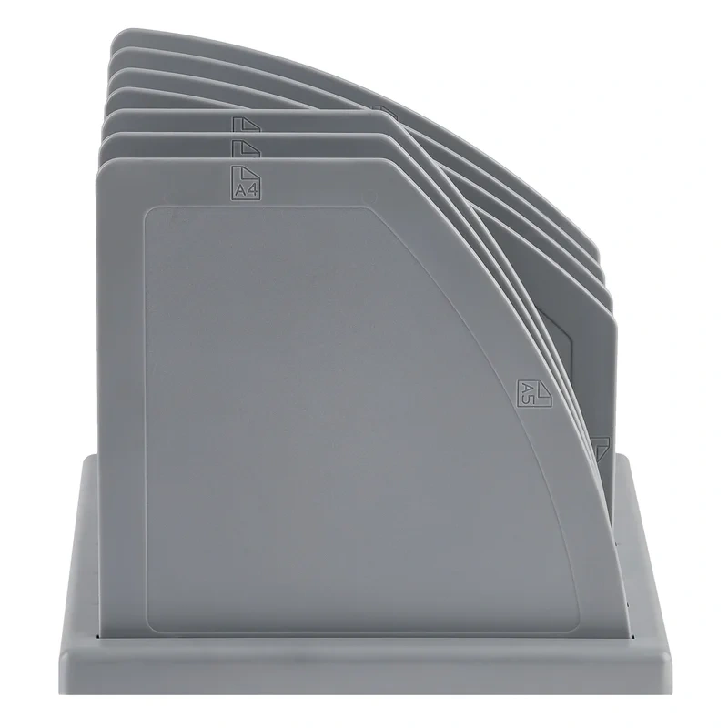 Лоток-сортер 6 отделений для бумаг форматов А4, А5. Современный дизайн, быстрая и легкая сборка. Возможна установка перегородок в вертикальном и горизонтальном положениях. Удобная конструкция предусматривает регулировку ширины отделений. Изготовлен из качественного пластика. Упакован в термоусадочную пленку, поставляется в разобранном виде. Инструкция по сборке в комплекте. Цвет лотка - серый. Изделие высотой 170мм, глубиной 193мм, шириной 215мм вмещает до 1500 листов.