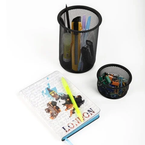 Стакан для ручек Erich Krause Steel 95х80мм, серая, квадратная, металлическая сетка