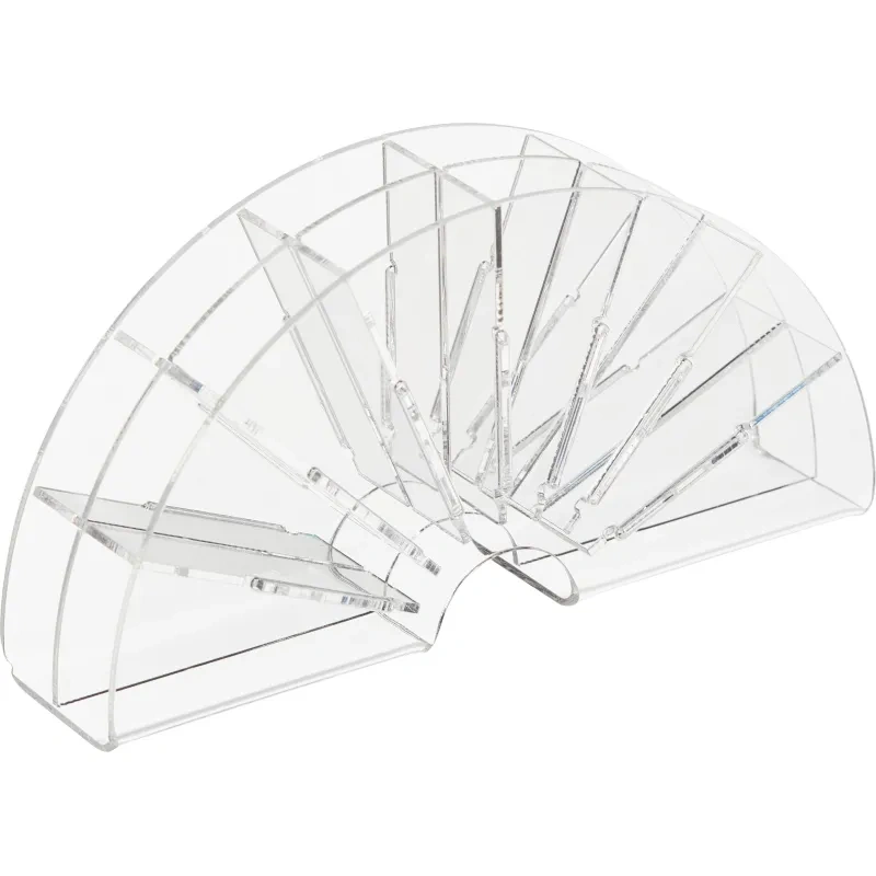 Подставка под канцелярские принадлежности настольная в форме веера на 12 секций (горизонтальная). Выполнена из высококачественного прозрачного акрила, хорошо подходит для хранения, канцелярских принадлежностей, мелочей и других аксессуаров. Выпускается в защитной пленке по 1 штуке. Габаритные размеры: 75×145×20 мм (ВхШхГ).