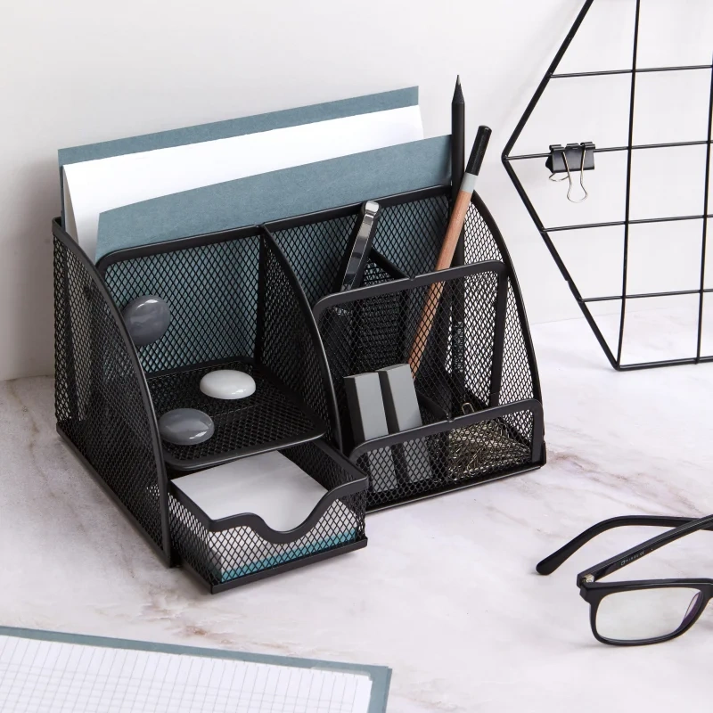Подставка-органайзер 7отд 130x220x140мм с выдв.ячейкой металл сетка черн