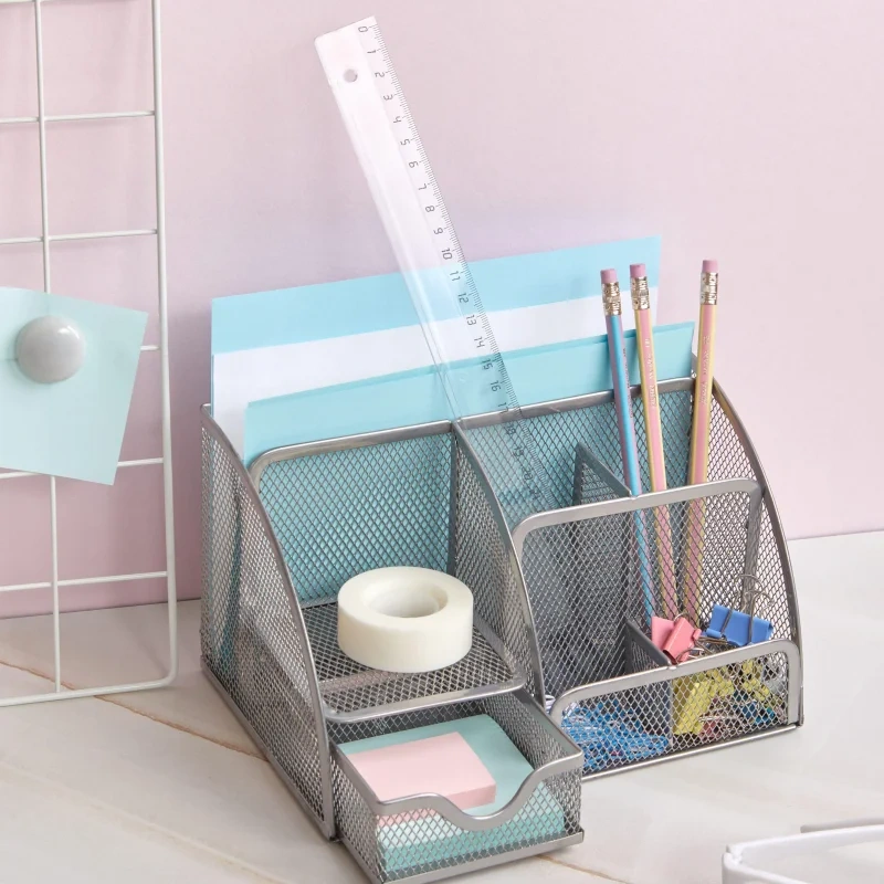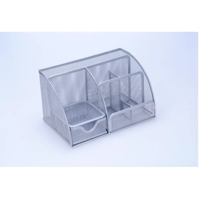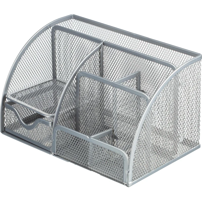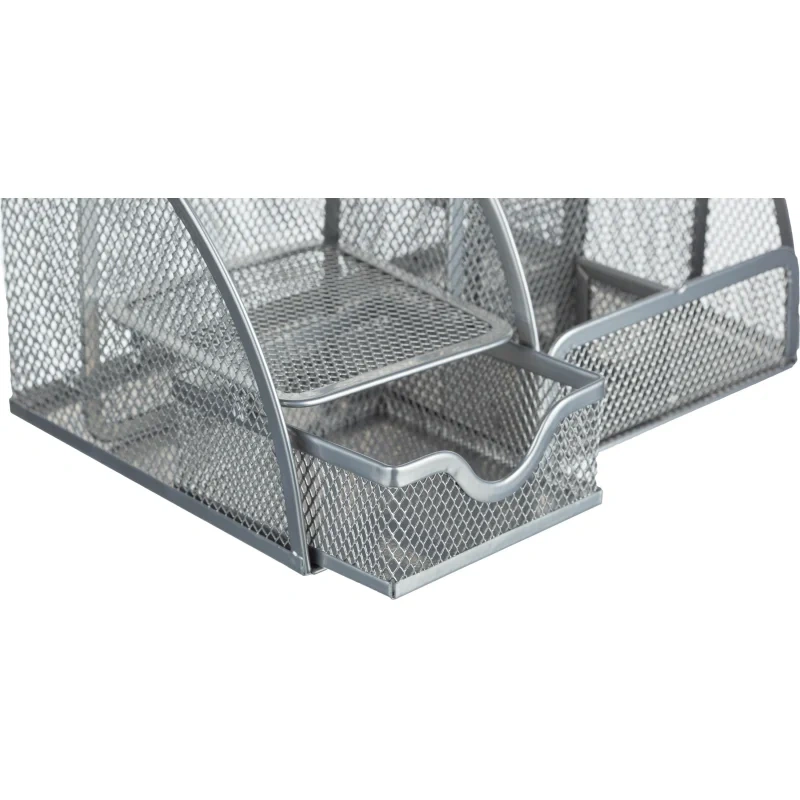 Подставка-органайзер 7отд 130x220x140мм с выдв.ячейкой металл сетка серебр