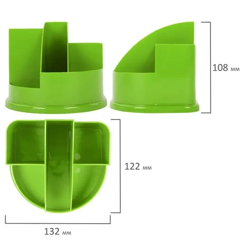 Изготовлена из высококачественного пластика. Имеет размеры 132х122х108 мм. Состоит из 5-ти отделений для канцелярских мелочей и пишущих принадлежностей. Поставляется без наполнения в нескольких вариантах цвета (без возможности выбора).