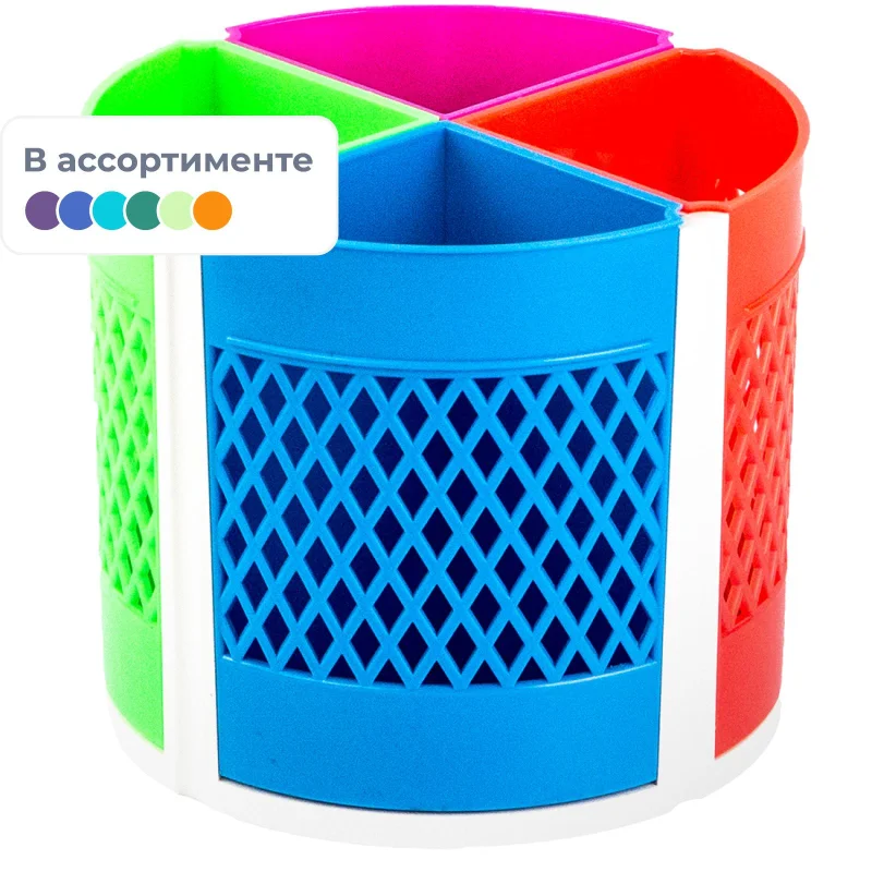 Подставка-органайзер д/канц.мелочей Attache fantasy 8отд вращающ ассорти Разноцветная подставка для канцелярских мелочей Attache fantasy хорошо подойдет для рабочего стола и не займет много места. Все необходимые канцелярские принадлежности всегда будут под рукой. Компактная и эргономичная подставка-трансформер Attache fantasy без наполнения. В зависимости от расположения лотков, количество отделений составляет от 4 до 8. Вращается на 360 градусов. Изготовлена из ударопрочного пластика. Размеры: 110x125x125 мм.