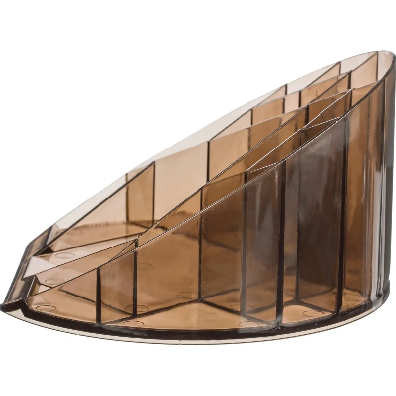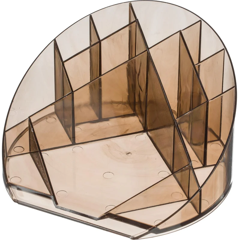 Подставка-органайзер д/канцеляр. принадл-ей Attache форум 12отдел прозр тон Подставка для канцелярских мелочей Attache хорошо подойдет для рабочего стола и не займет много места. Все необходимые канцелярские принадлежности всегда будут под рукой. Подставка Attache имеет оригинальную и удобную форму с гладкой полированной поверхностью. Подставка выполнена из прозрачного тонированного коричневым цветом пластика. Состоит из 12 секций разного размера для разных канцелярских принадлежностей: блока бумаги, ручек, скрепок, клея и других. Размер: 100х175х175 мм.