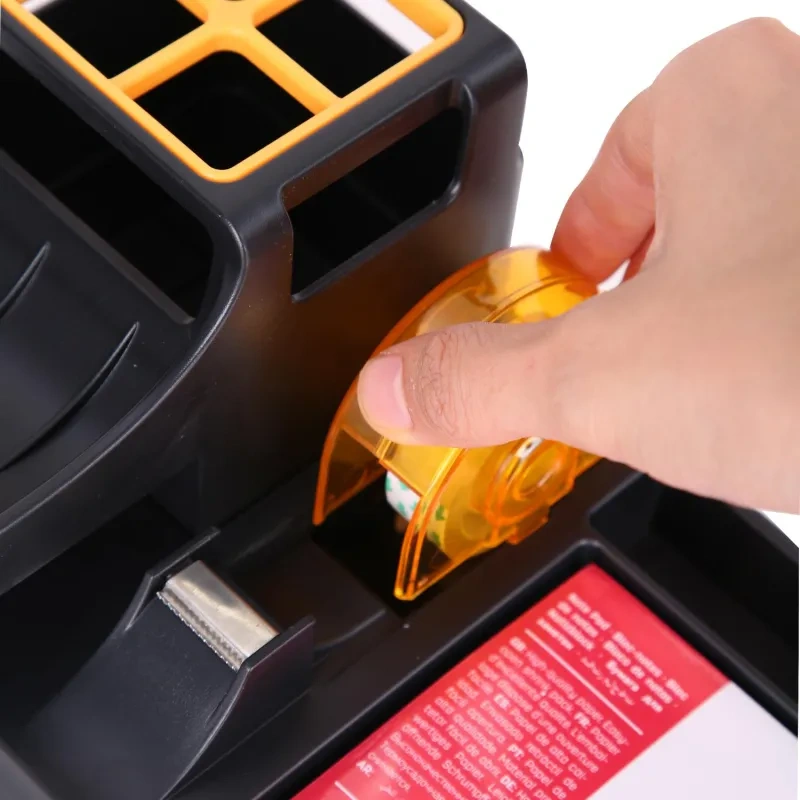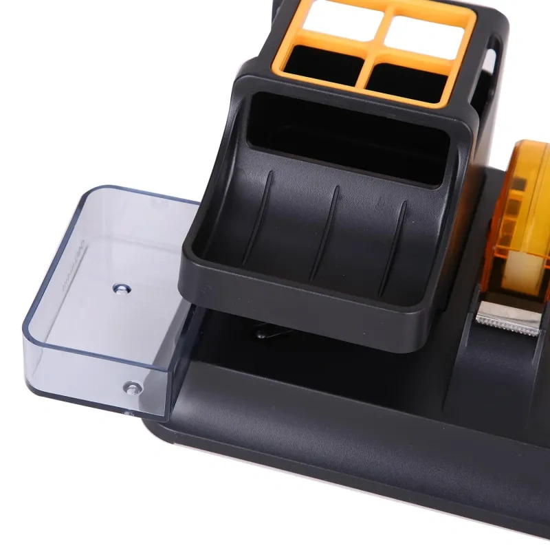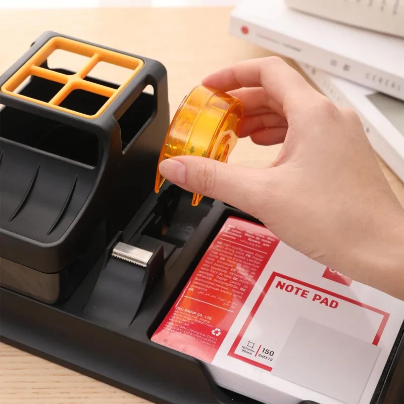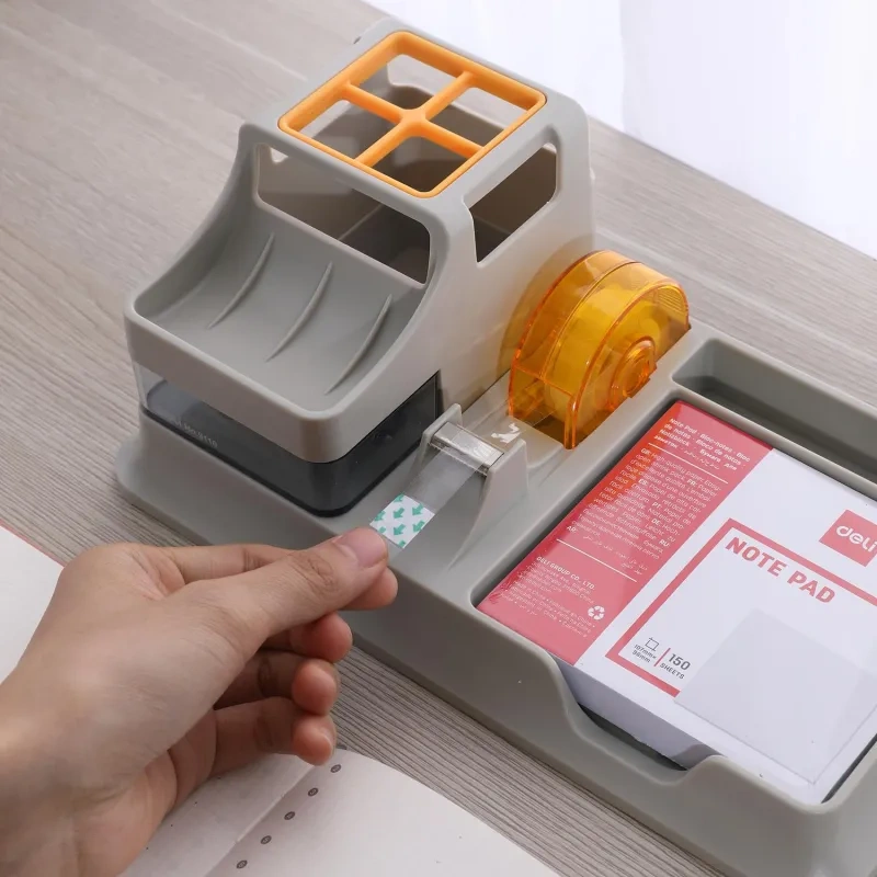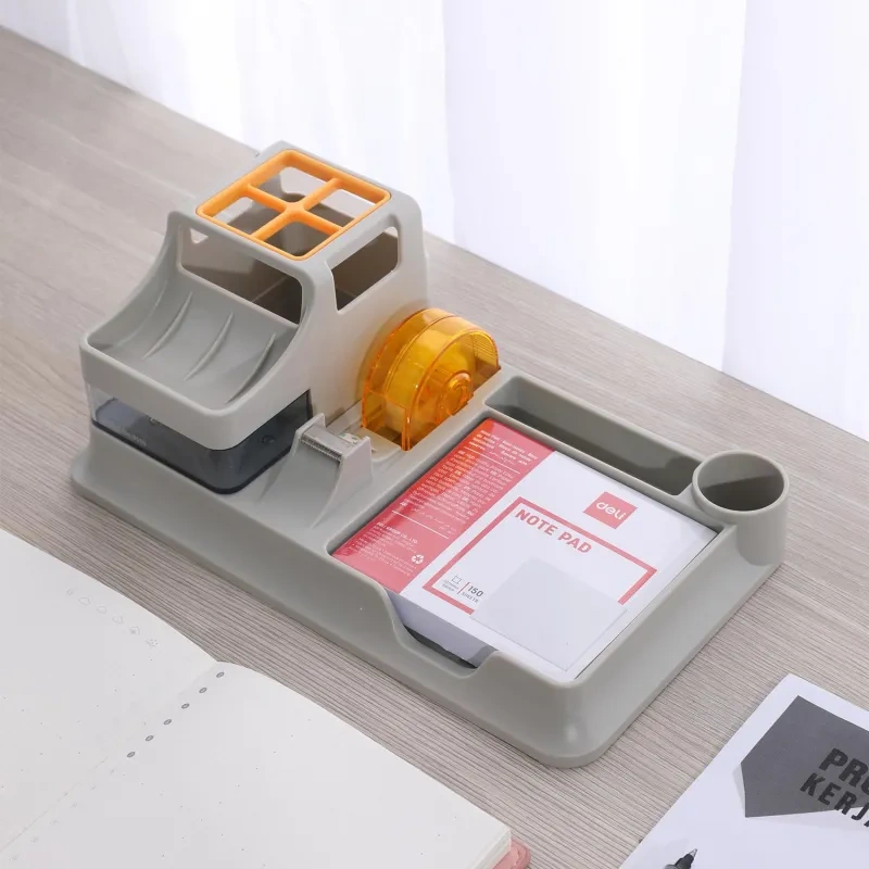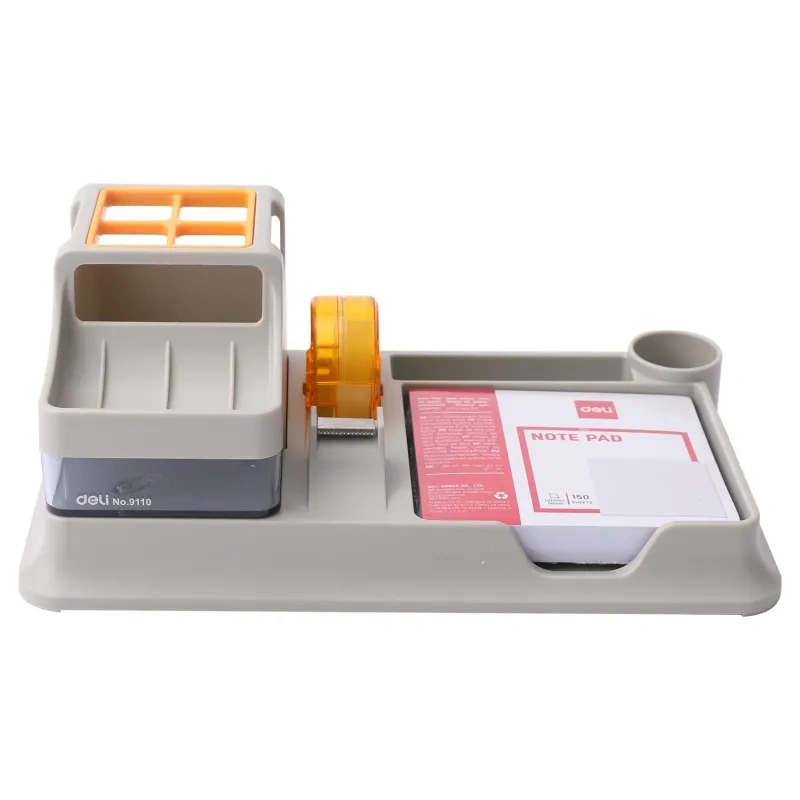 Подставка Deli для пишущих принадлежностей с небольшим выдвижным ящиком. Настольный органайзер для хранения вещей отлично подойдет для хранения мелочей на вашем на столе. Многофункциональная подставка под канцелярские принадлежности станет настоящим украшением любого интерьера! Ненавязчивость форм, соответствующий дизайн, утонченность материалов. Функциональный и стильный органайзер для ручек и карандашей, изготовлен из высококачественного полистирола. Подставка под школьные принадлежности для рабочего стола имеет стильный дизайн, вместительные отсеки. Всего семь блоков: высокий стакан разделен перегородкой на четыре части для карандашей, ручек, фломастеров, линеек, линеров; четыре для хранения ластика, клея, ножниц, стикеров и других вещей, один небольшой выдвижной ящика для мелкоофисных принадлежностей; диспенсер. На дне изделия располагается противоскользящее покрытие, препятствующее скольжению и удержанию подставки.