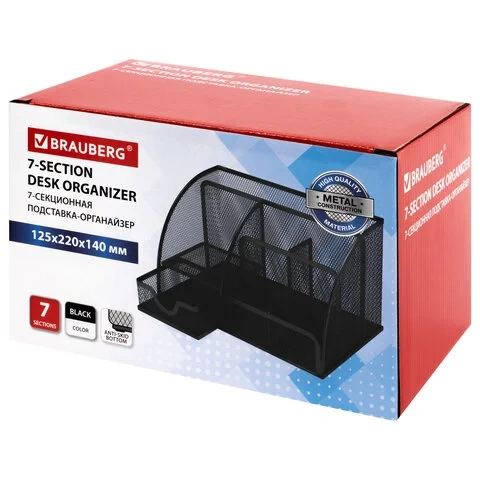 Подставка-органайзер металлическая BRAUBERG, 7 секций, 125х220х140 мм, черная, 237416
