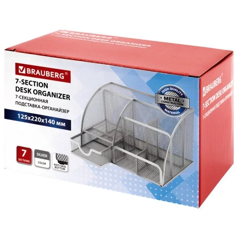 Подставка-органайзер металлическая BRAUBERG, 7 секций, 125х220х140 мм, серебро, 237417