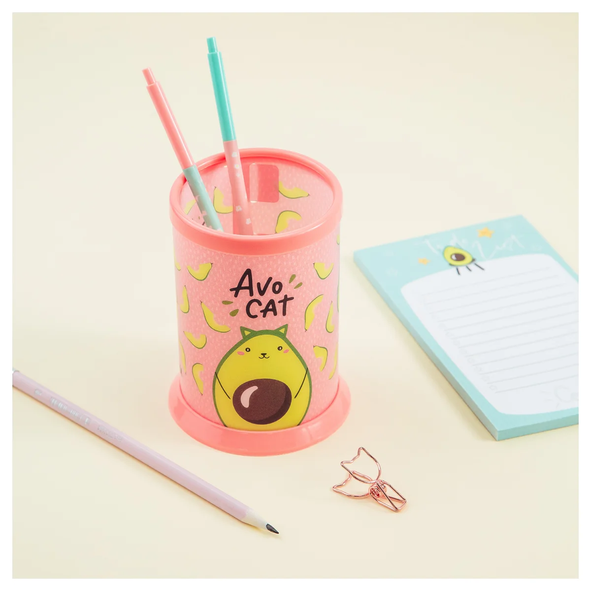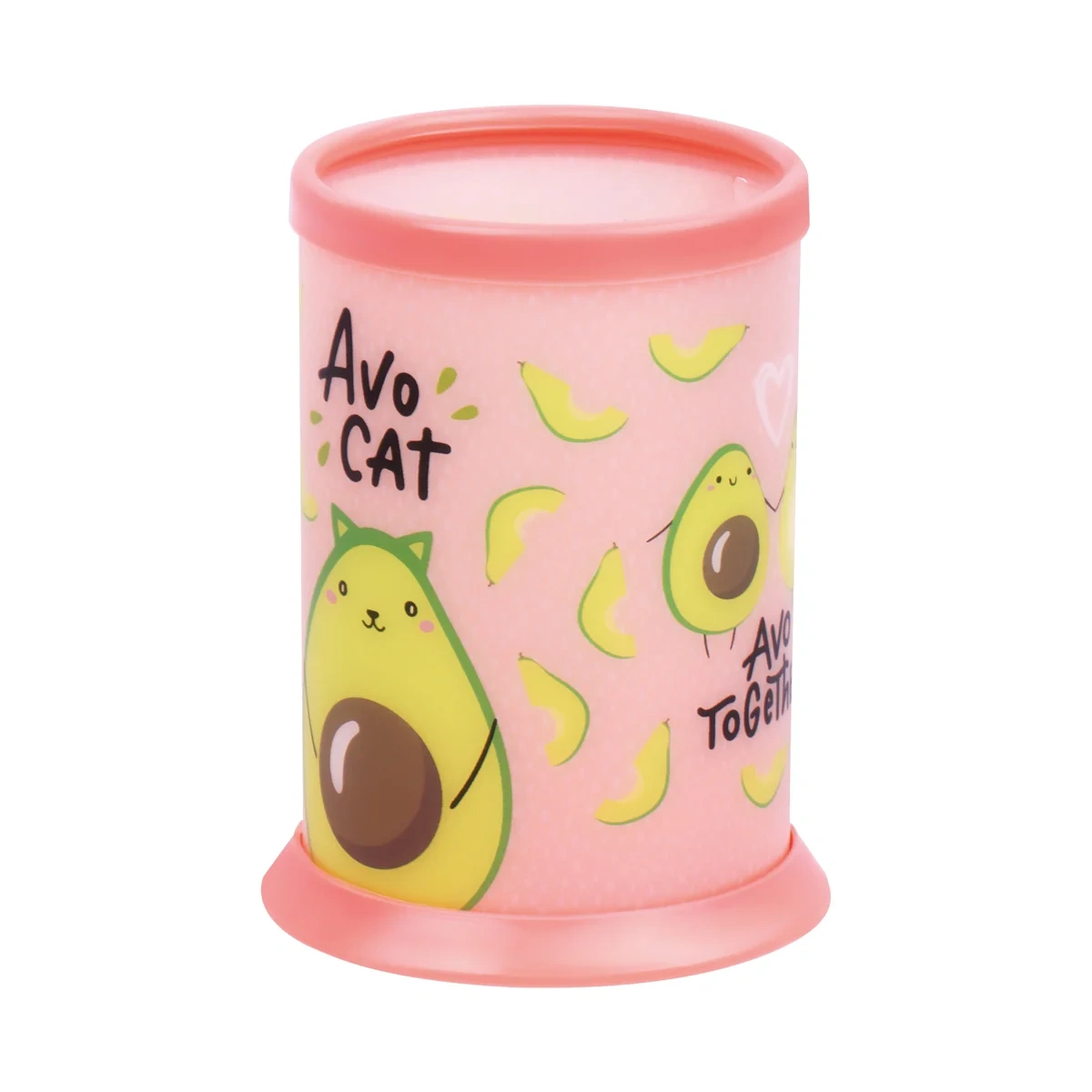 Подставка-стакан MESHU Avocat в милом дизайне предназначена для хранения пишущих принадлежностей. Размер круглой подставки – 8,5*12 см. Подставка изготовлена из пластика. Упакована в ОПП пакет с европодвесом. Схема сборки подставки указана на упаковке.