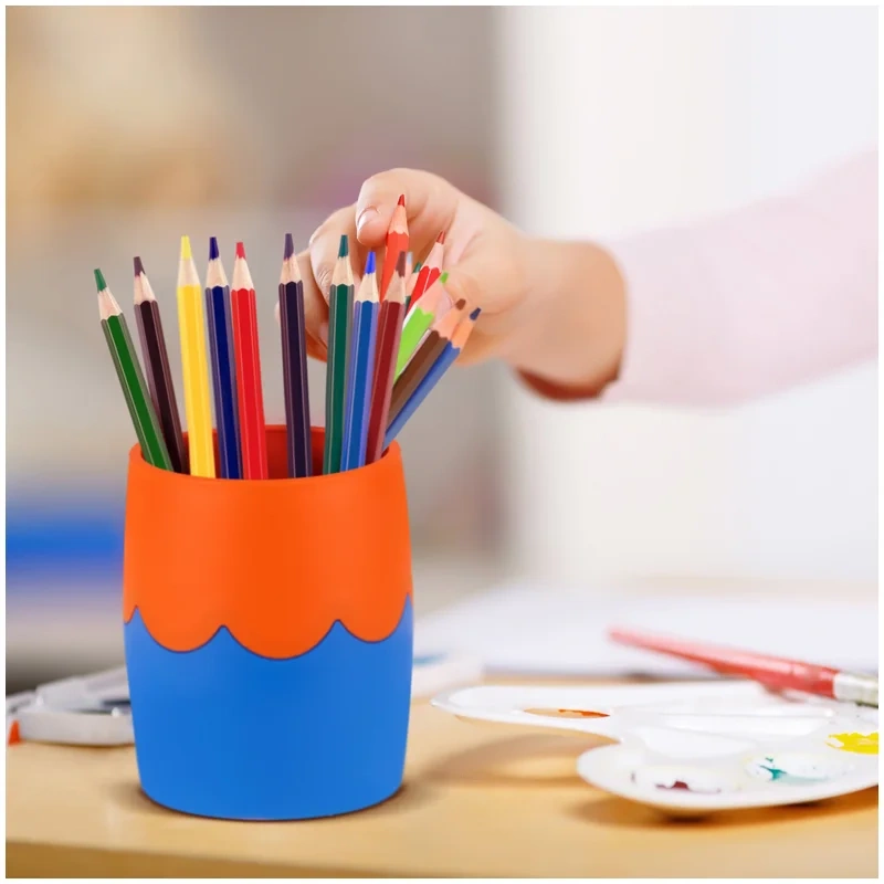 Подставка-стакан Мульти-Пульти, пластик, круглый, двухцветный сине-оранжевый