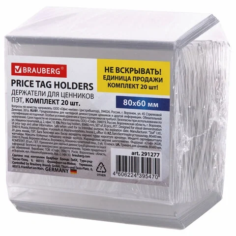 Держатель для ценников Brauberg 80х60мм, 0.5мм, ПЭТ, 20шт/уп