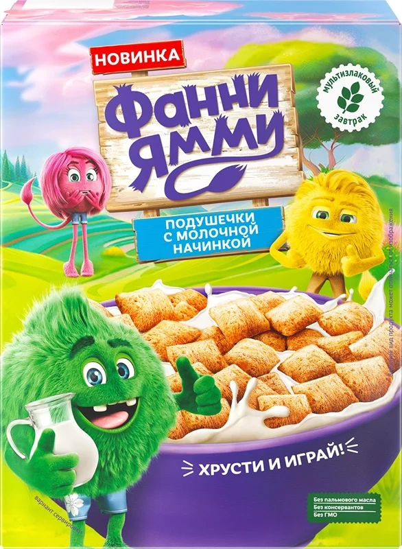 Подушечки с молочной начинкой - это вкусное начало дня для всей семьи. В их состав входят ценные злаки, которые богаты углеводами, и нежная молочная начинка. А еще в них нет пальмового масла, консервантов, ГМО.