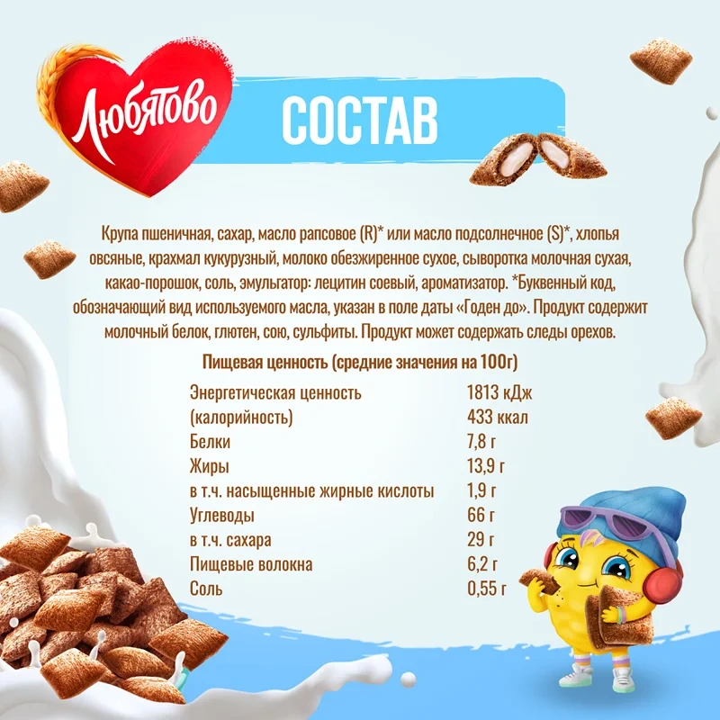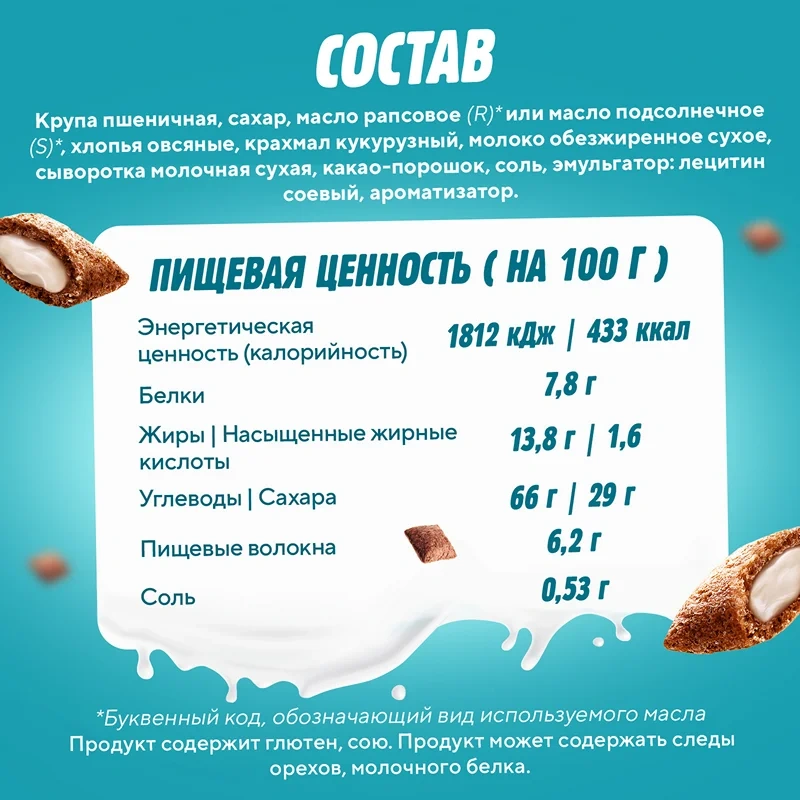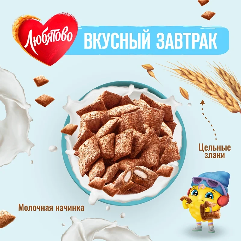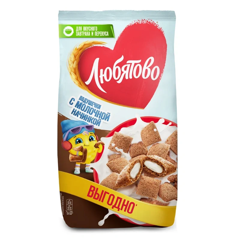 Подушечки с молочной начинкой для вкусного завтрака и перекуса. Без красителей и консервантов. Цельное зерно, входящее в состав подушечек, делает этот готовый завтрак невероятно питательным, а тающая начинка - потрясающе вкусным. Вот почему их так любят и дети, и взрослые, с молоком или просто с чаем.