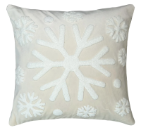 Декоративная подушка на молнии размером 45x45 см. Съемный чехол выполнен из бархата молочного цвета с объемной ковровой вышивкой в виде снежинок на лицевой стороне. Ткань изготовлена из плотного полиэстера, приятна на ощупь, не мнется и не впитывает влагу.