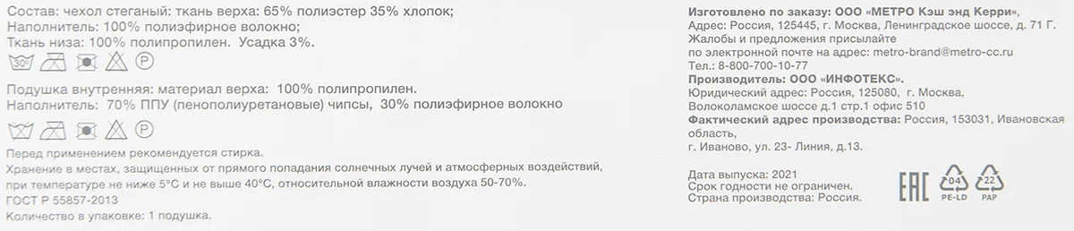 Рекомендуется машинная стирка в щадящем режиме при температуре не выше 30 градусов.