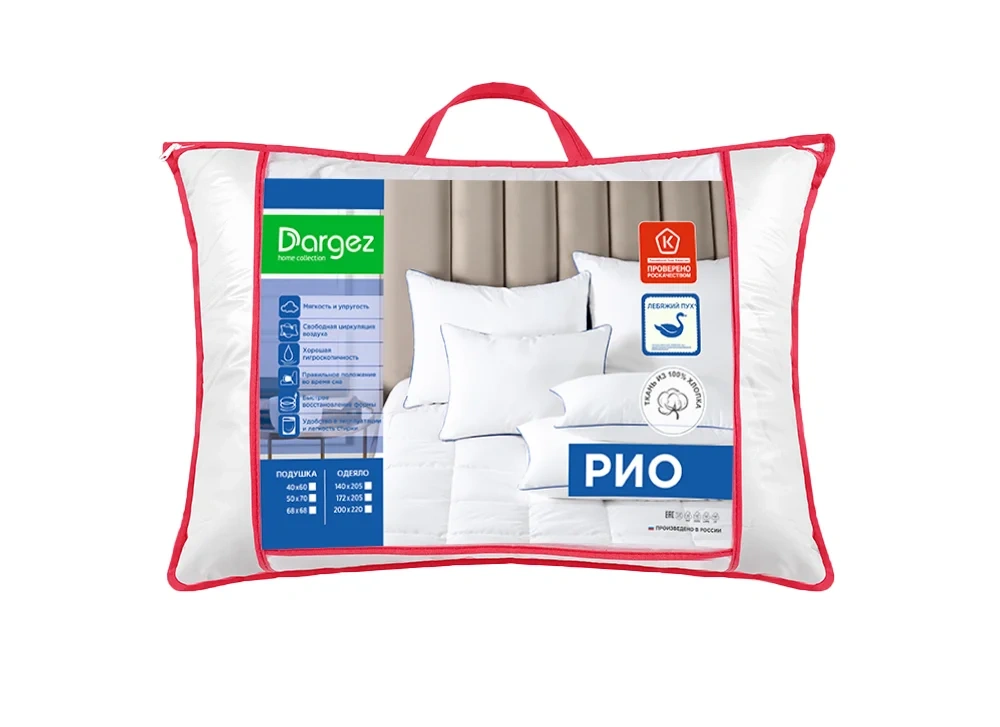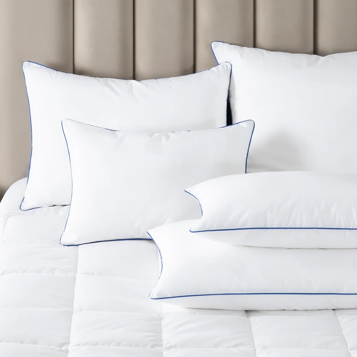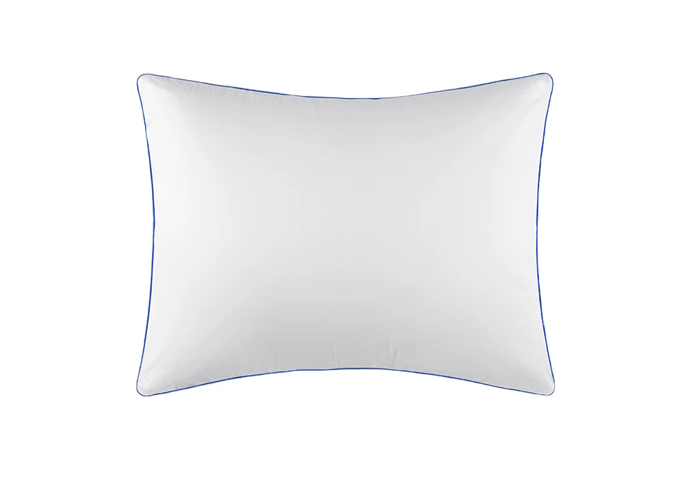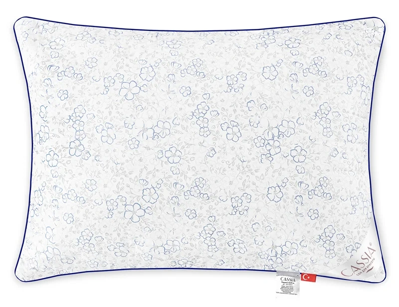 Подушка обрамлена красивым кантом. Пушистая и легко сжимаемая, она принимает форму головы, быстро восстанавливает объем и обладает ортопедическим эффектом. Средний уровень жесткости позволяет комфортно погружаться в здоровый сон. Модель подходит для тех, кто спит на боку, спине или животе.