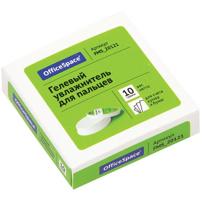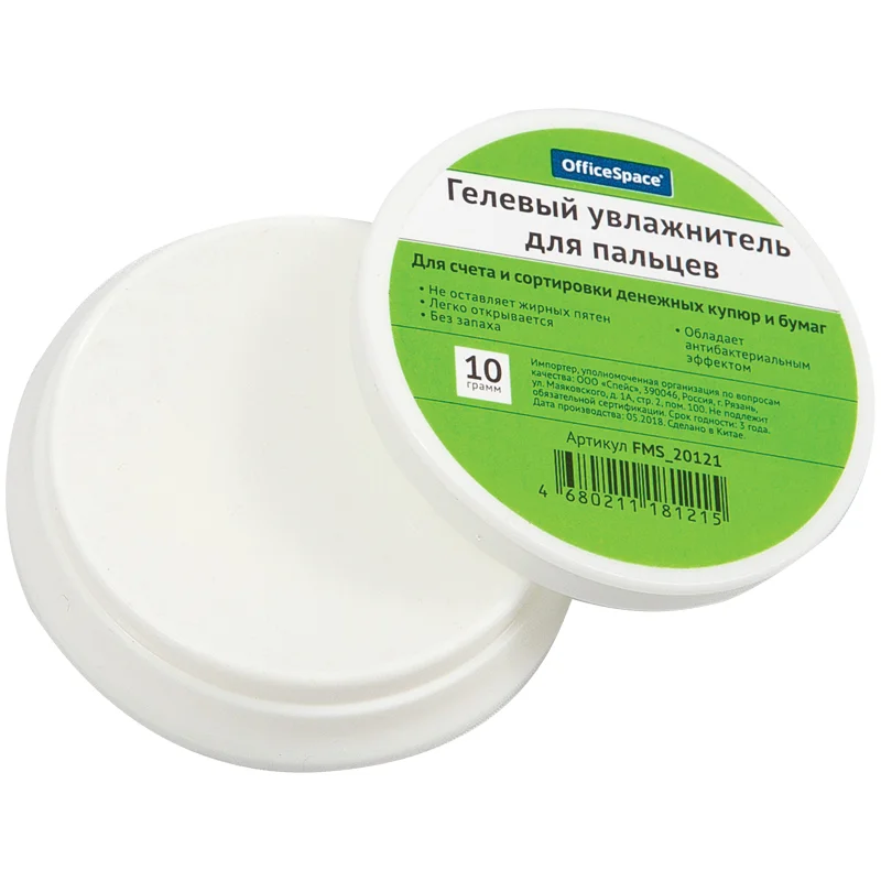 Гелевый увлажнитель для пальцев. Предназначен для работы с бумагами и пересчета денежных купюр. Обладает антибактериальным эффектом, не оставляет жирных пятен, не содержит ароматизаторов. Расфасован в пластиковые контейнеры по 10 грамм. Не скользит по поверхности стола. Упакован в индивидуальную картонную коробку.