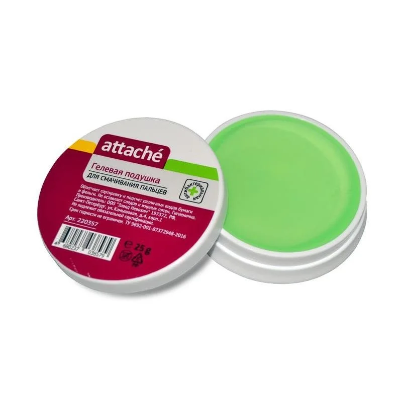 Подушка для смачивания пальцев ATTACHE 25 г облегчает работу при подсчете денег и сортировке различных бумаг: документов, бюллетеней, подписных листов и прочих. Гель незаменим при больших объемах работы с бумажными документами.