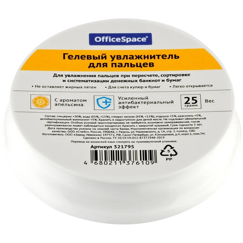 Гель для увлажнения пальцев OfficeSpace облегчает работу при подсчете денег, перелистывании документов с ароматом сочного апельсина. Изготовлен из экологически чистых материалов. Обладает усиленными антибактериальными свойствами. Упаковка в термоусадочную пленку.