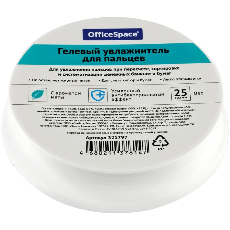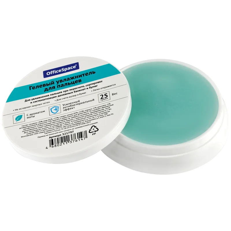 Гель для увлажнения пальцев OfficeSpace облегчает работу при подсчете денег, перелистывании документов с ароматом сладкой мяты. Изготовлен из экологически чистых материалов. Обладает усиленными антибактериальными свойствами. Упаковка в термоусадочную пленку.