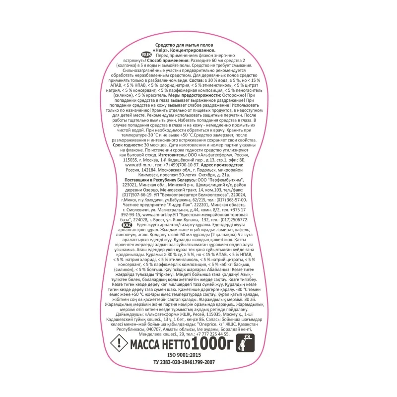 Средство для мытья пола Help Морской бриз 1л, концентрат