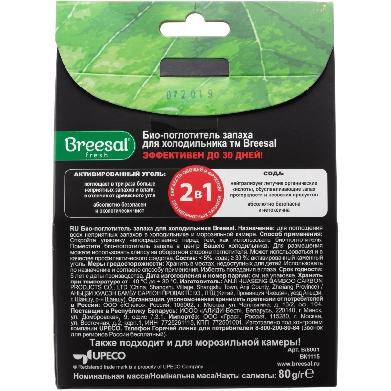 Поглотитель запаха для холодильников Breesal 80г