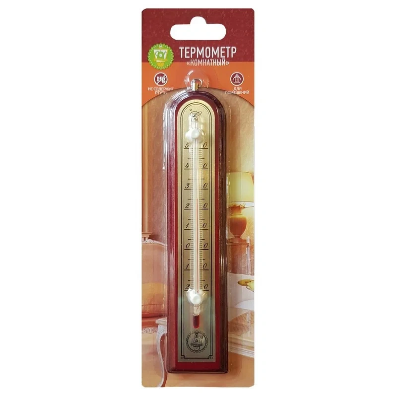 Термометр Garden show 18.8x3.9см, красное дерево, без ртути
