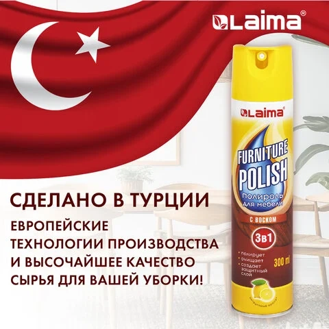Полироль для мебели с воском и антистатиком 3 в 1, аэрозоль, 300 мл, LAIMA (Аналог PRONTO/ПРОНТО), Т