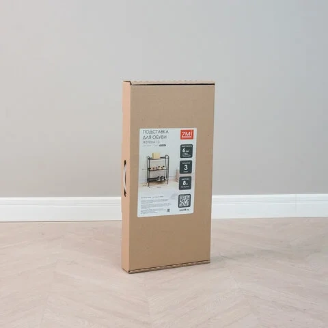 Три наклонные полки, каждая способна вместить до 2 пар обуви и выдержать нагрузку до 8 кг.
